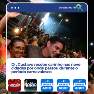 Dr. Gustavo também parabenizou o prefeito Lula Soares pela realização do belíssimo Carnaval de Assú, destacando a importância da festa para a valorização da cultura, o fortalecimento do turismo e a movimentação da economia local.