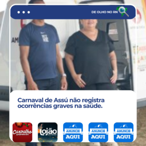 O Carnaval de Assú 2026 está acontecendo de forma tranquila nos aspectos de saúde pública. Os quatro dias de festa registraram menos de 40 atendimentos no posto médico montado pela Prefeitura, com apenas 4 transferências para a UPA 24h.