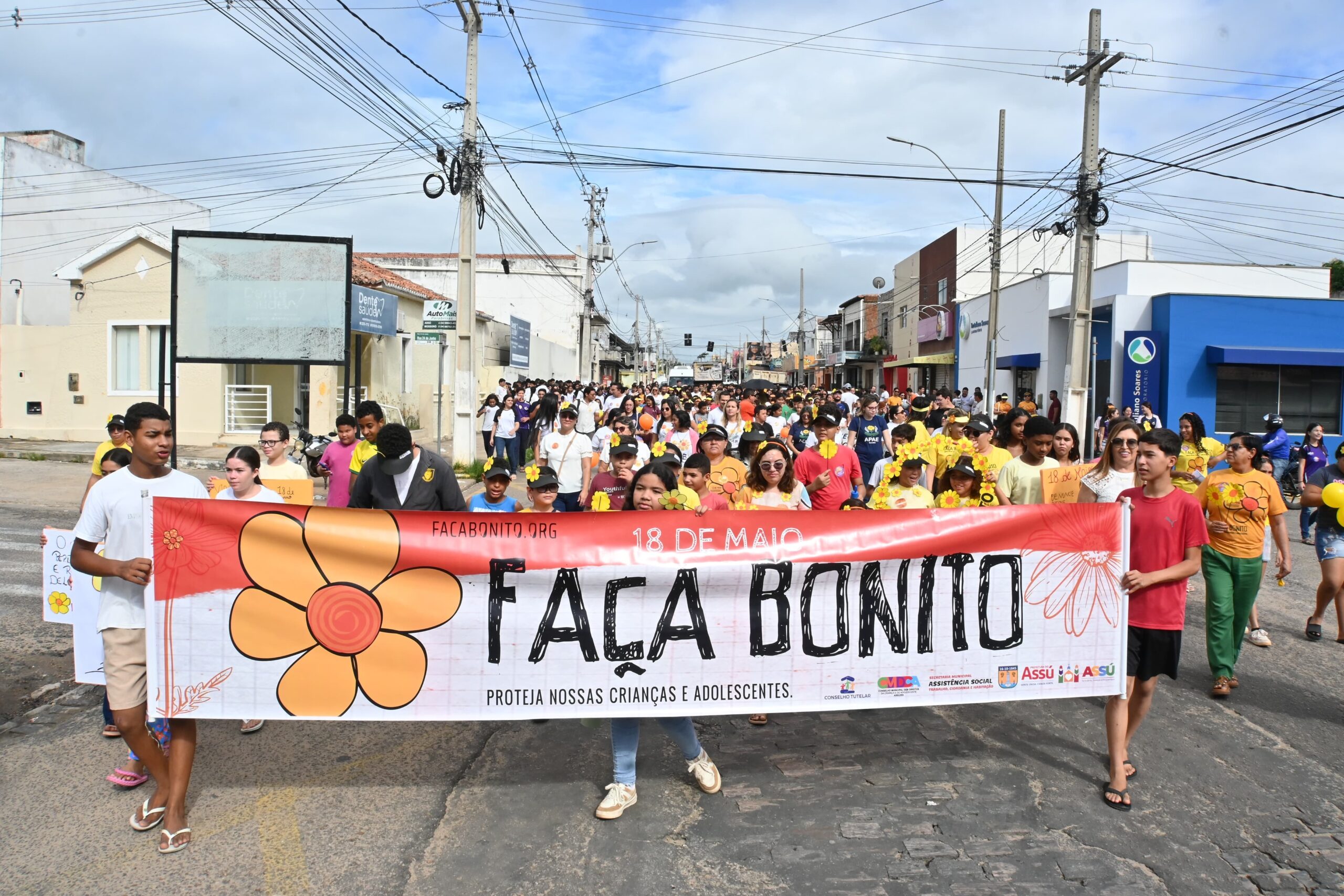 Na manhã desta terça-feira (20), a cidade de Assú deu um exemplo de união e conscientização ao realizar a tradicional caminhada “Faça Bonito”, em alusão ao Dia Nacional de Combate ao Abuso e à Exploração Sexual de Crianças e Adolescentes (18 de maio). A mobilização tomou conta da avenida Senador João Câmara, que foi colorida em amarelo, laranja e branco, simbolizando o engajamento da população na defesa dos direitos da infância e juventude.