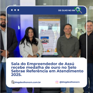 A Sala do Empreendedor de Assú foi reconhecida com a medalha de ouro no Selo Sebrae Referência em Atendimento 2025. Entre todos os municípios do Rio Grande do Norte, Assú se destacou como o melhor serviço voltado ao apoio e orientação de empreendedores.