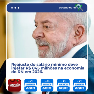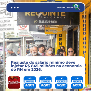 O reajuste do salário mínimo a partir de 1º de janeiro de 2026 deve injetar cerca de R$ 845 milhões na economia do Rio Grande do Norte, segundo projeção do Instituto Fecomércio RN. O piso nacional terá aumento real de 2,5%, passando de R$ 1.518 para R$ 1.621, o que deve ampliar o consumo e movimentar diferentes setores da economia potiguar.