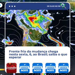 Um novo ciclone está se formando ao sul da América do Sul, e sua frente fria chegará ao Sul do Brasil ainda na sexta-feira (6). O sistema está previsto para começar a ingressar pelo sul do Rio Grande do Sul entre a manhã e a tarde da sexta, avançando em direção a Santa Catarina, Paraná e Região Sudeste ao longo do fim de semana.