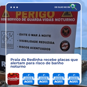 Foi iniciada a instalação de placas de alerta sobre o banho noturno na Praia da Redinha, na zona Norte de Natal. A sinalização informa sobre o perigo da prática, que viralizou nas últimas semanas, e foi desaconselhada pelo Corpo de Bombeiros.