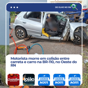 Uma colisão entre uma carreta e um carro de passeio deixou uma pessoa morta na tarde desta segunda-feira 23 na BR-110, no trecho entre Mossoró e Upanema, no Oeste do Rio Grande do Norte.