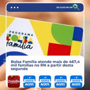 O Bolsa Família atende, em janeiro, 467,4 mil famílias nos 167 municípios do Rio Grande do Norte. O investimento do Governo do Brasil no estado supera R$ 316,3 milhões, com benefício médio de R$ 676,68. O cronograma de pagamentos começa nesta segunda-feira 19 e segue até o dia 30, conforme o final do Número de Identificação Social (NIS).