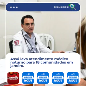 A Prefeitura de Assú iniciou o cronograma de atendimentos nas Unidades Básicas de Saúde (UBS) das comunidades durante o mês de janeiro. O programa Mais Saúde na Comunidade funciona a partir das 17 horas e percorre 18 localidades do município até o dia 29.