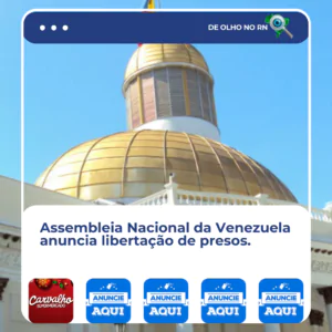 O presidente da Assembleia Nacional da Venezuela, Jorge Rodríguez, anunciou, nesta quinta-feira 8, a libertação de venezuelanos e estrangeiros que estavam presos. Não foi informado o número de pessoas que foram soltas.Assembleia Nacional da Venezuela anuncia libertação de presos – Agora RNAssembleia Nacional da Venezuela anuncia libertação de presos – Agora RN