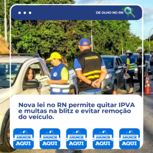 Motoristas do Rio Grande do Norte passam a contar com uma nova possibilidade para regularizar débitos veiculares durante fiscalizações de trânsito. A Lei nº 12.615/2025, publicada no Diário Oficial do Estado desta sexta-feira (26), institui o Programa RN em Dia e autoriza a quitação imediata de IPVA, taxa de licenciamento e infrações de trânsito no momento da abordagem, evitando a remoção do veículo quando a única irregularidade for pendência financeira.De acordo com a legislação, o pagamento poderá ser realizado por meio de sistema bancário eletrônico, incluindo o Pix, desde que haja disponibilidade técnica no momento da fiscalização. A medida se aplica às abordagens realizadas em todo o território potiguar e segue o que estabelece o Código de Trânsito Brasileiro.