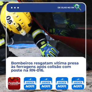 Na madrugada deste domingo 25, o Corpo de Bombeiros Militar do Rio Grande do Norte (CBMRN) atendeu uma ocorrência de acidente de trânsito com vítima presa às ferragens na RN-016, no município de Açu, na região Oeste potiguar.