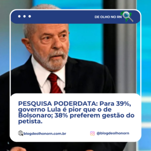 Pesquisa PoderData, divulgada neste domingo (21) pelo site Poder 360, mostra que 39% dos brasileiros consideram o governo do presidente Luiz Inácio Lula da Silva (PT) pior que o do ex-presidente Jair Bolsonaro (PL).