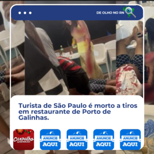 Um turista foi morto a tiros, na noite do último domingo (4), dentro de um restaurante à beira-mar de Porto de Galinhas, em Ipojuca, na Região Metropolitana do Recife (PE). A vítima, de 32 anos, natural de São Paulo, jantava com a companheira no estabelecimento e morreu ainda no local, antes da chegada do socorro. A vítima foi identificada como Rafael Ventura Martins, natural de São Paulo.
