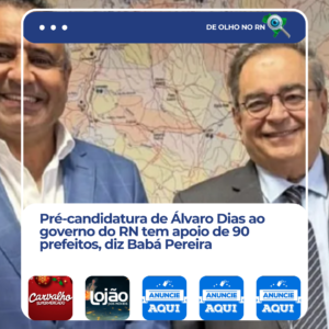 Na entrevista, Babá também reiterou que a chapa liderada por Álvaro Dias já teria o apoio de cerca de 90 prefeitos do Rio Grande do Norte. A expectativa é reunir esses gestores no evento de lançamento da pré-candidatura, marcado para 21 de março, em Natal.