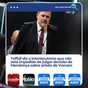 O ministro Dias Toffoli, do Supremo Tribunal Federal (STF), avalia se participará do julgamento que analisará a decisão do ministro André Mendonça que determinou a prisão do banqueiro Daniel Vorcaro.