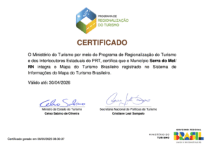 A certificação reafirma a vocação de Serra do Mel para o turismo regional e nacional, valorizando sua história, sua cultura e os atrativos que encantam visitantes e fortalecem a identidade local.